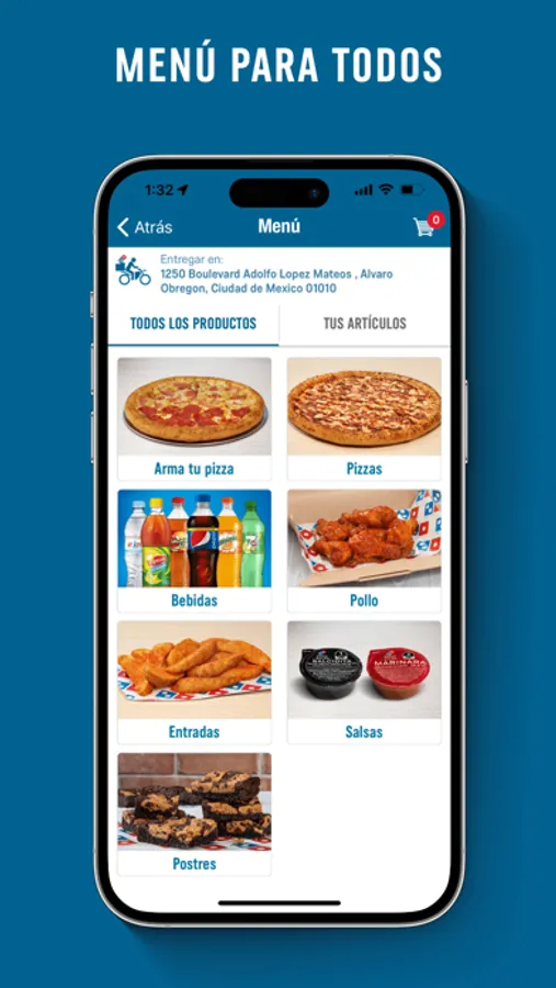 Realiza tu orden sin salir, ni largas filas y obtén una Domino's calientita hasta la puerta de tu casa o donde estés. Entra a la app y selecciona la forma de pedir: recoger en tienda o enviar a domicilio.