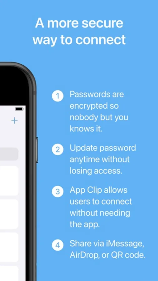 We know that it can be a pain to remember your passwords. That’s why we created Wi-Fi Connect. It lets you share your Wi-Fi access with friends, family, or anyone else in the world without having to give them your password! You can also create an encrypted link or QR code that opens an App Clip for people who don't have the app downloaded.