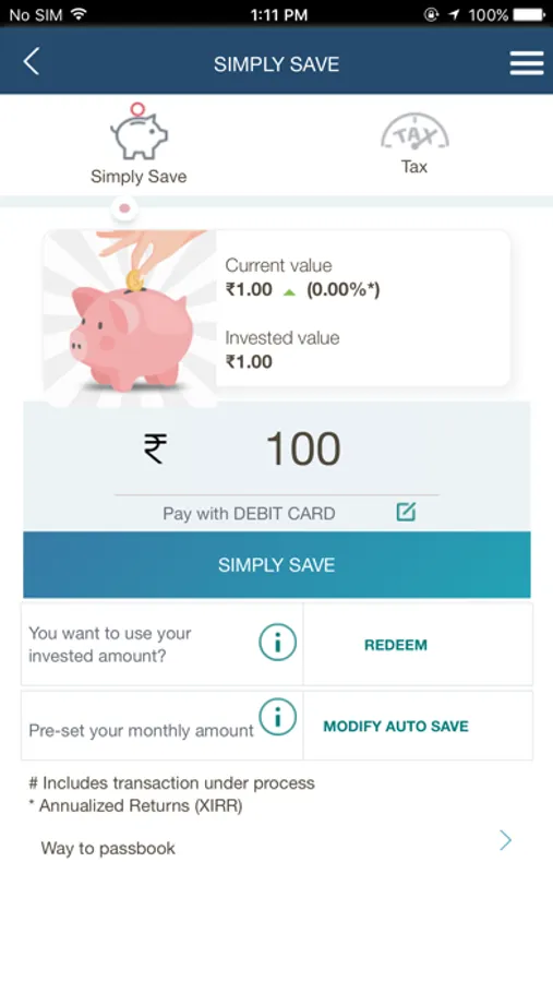 Preset your Saving Amount: Set the ‘Simply Save’ amount; you can choose any amount above Rs.100.