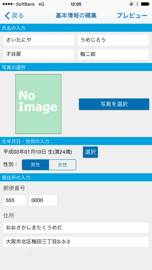 iPhoneでA4サイズ・日本用の履歴書PDFを生成するアプリです。