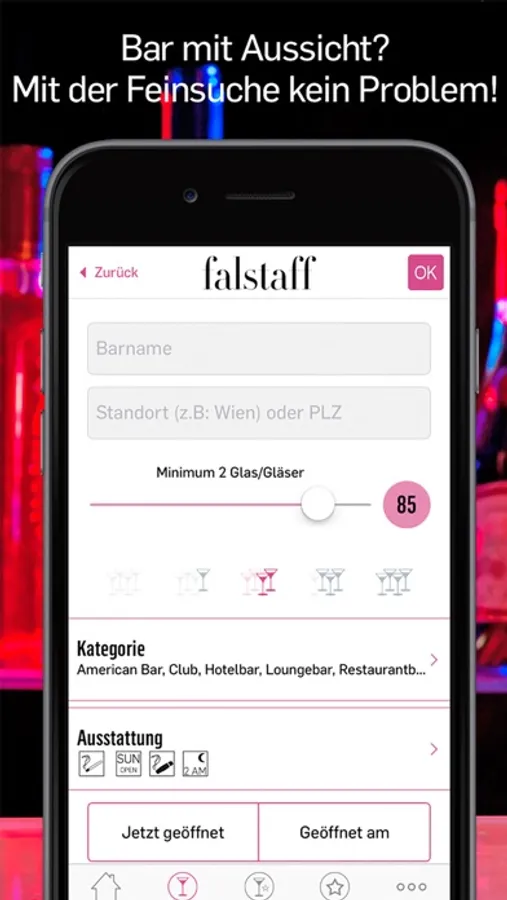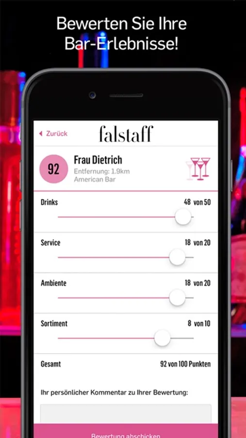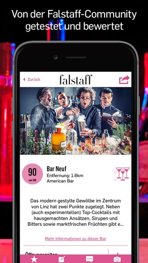 Als Gourmetclub-Mitglied oder falstaff.at-User können Sie Bars mit bis zu 100 Punkten bewerten und bestimmen somit das Ergebnis des nächsten Bar-&Spirits Guides mit.