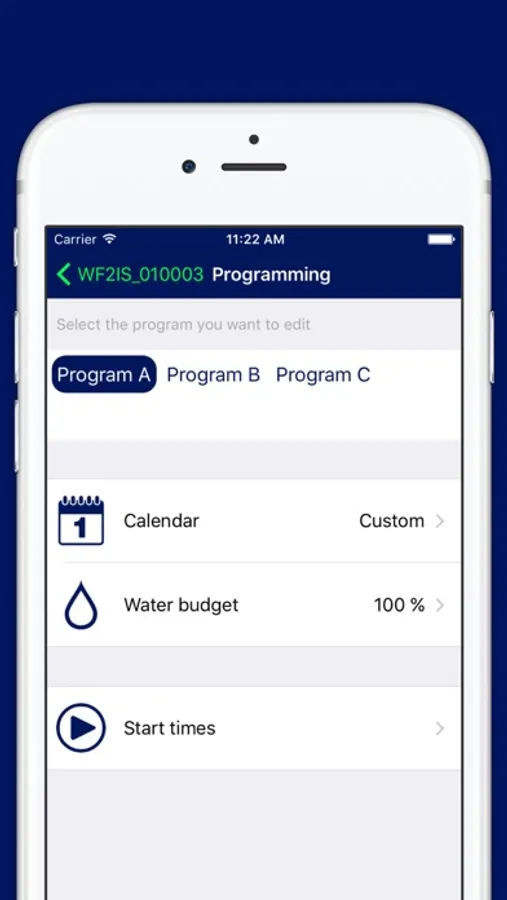 • carry out a complete configuration of the durations and start times of your irrigation, divided by areas