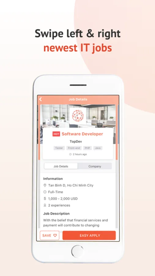 - Bằng cách vuốt trái hoặc phải để khám phá việc làm IT phù hợp