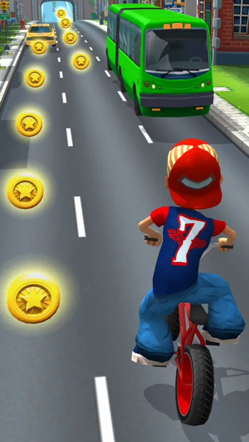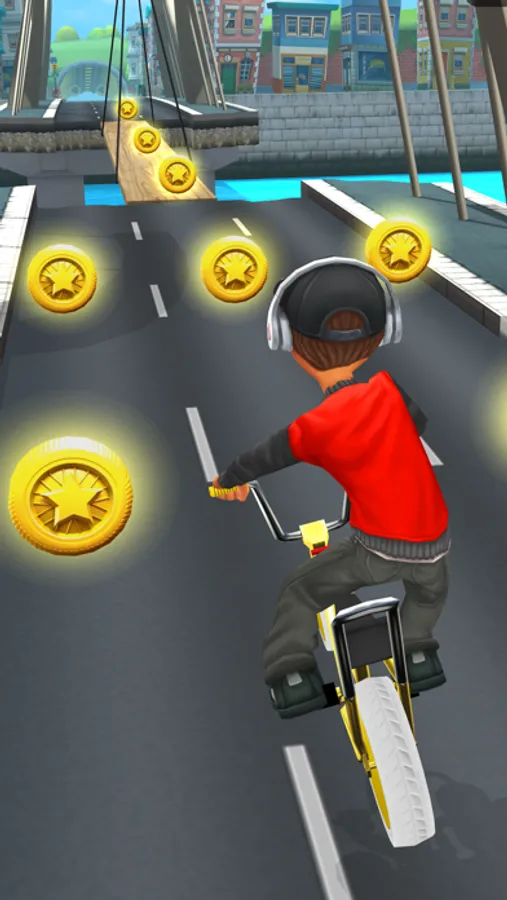Choose from either a boy or girl and ride your own shiny bicycle through the city. Meet Max, Amy and their ace buddies! Complete mission ranks and achievements for a challenge, or turn it up a gear and take on your friends and beat their high score. The more they play, the more rewards you earn!