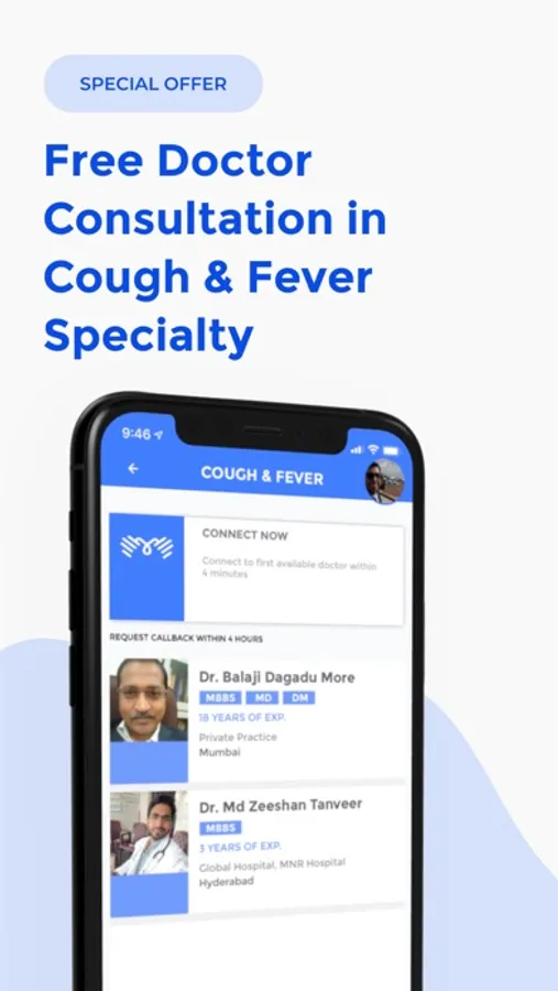 1. Convenient and Fast - ‘Connect now’ feature helps the patient connect with the first available doctor within 4 minutes (Fastest in the industry)
