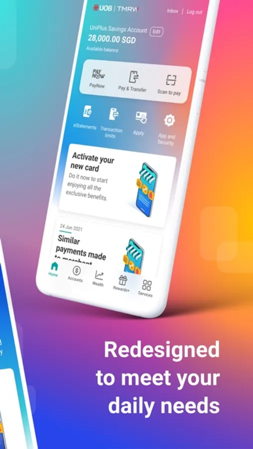 Rewards+ – Enjoy Singapore's newest and biggest rewards programme on the UOB TMRW app. Get personalised, exclusive deals on dining, shopping, travel and more, and track and use your cashback and rewards points.