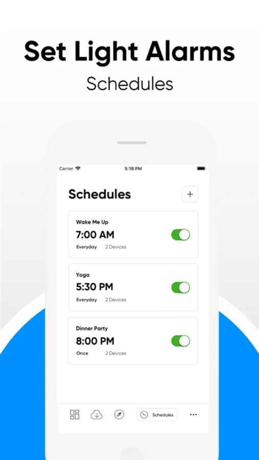 Set Schedules to automate your daily lighting needs, from gentle morning light-alarms, to gradually dimming nightly reminders that Holy **** it’s 2AM again, you need to wake up in 4 hours, PLEASE go to sleep.