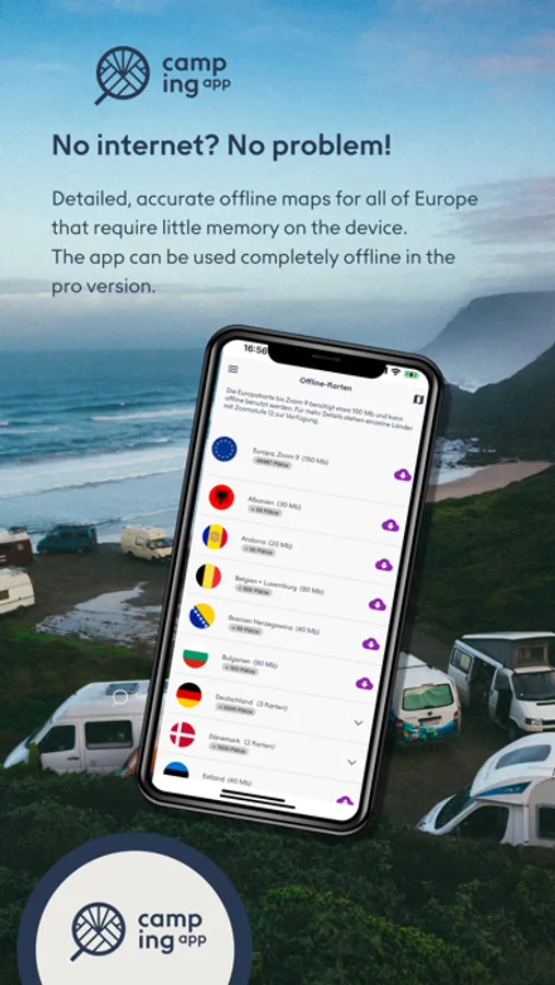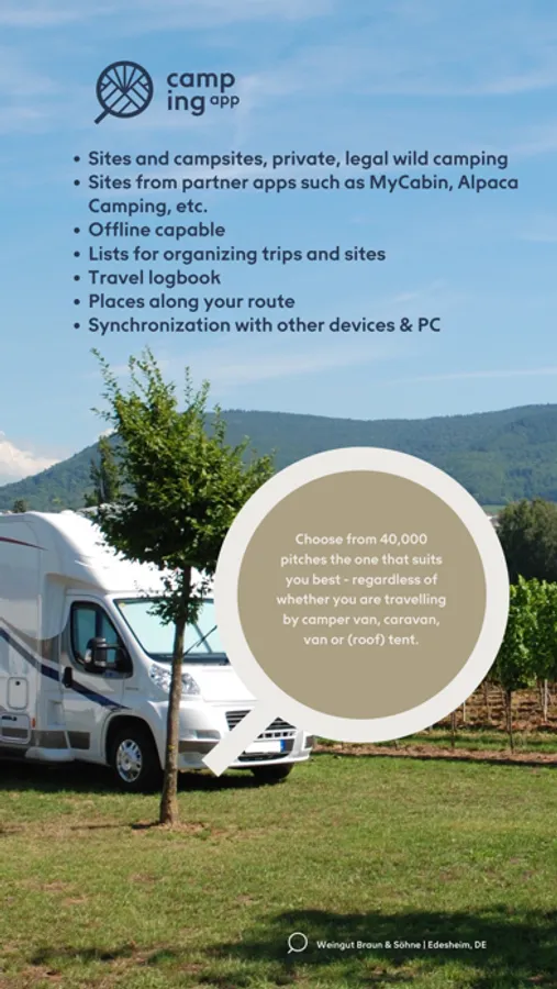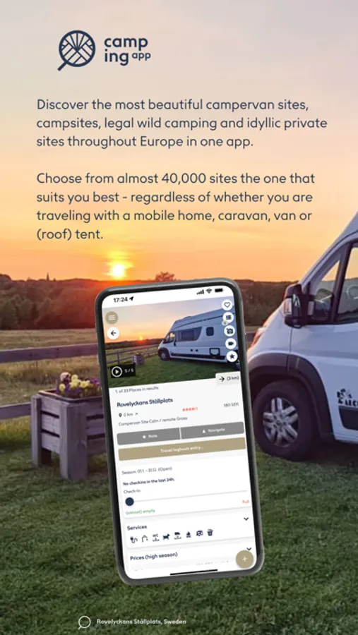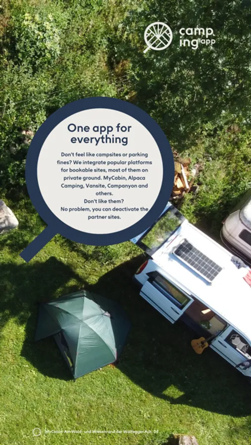 No advertising that tracks you, no interest in your data, no subscription - 40.000 sites across Europe, whether with a mobile home, caravan, van or tent.