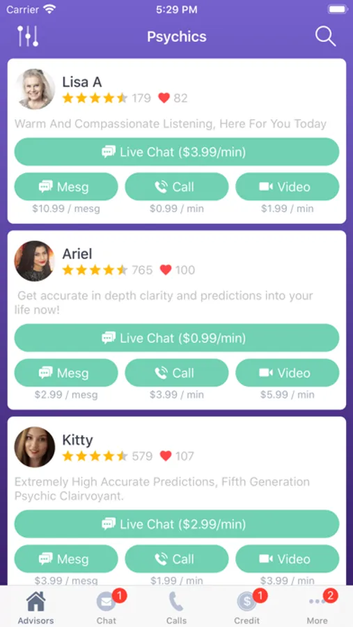 Our mobile app is built on the latest technologies which enables you to connect to a psychic advisor instantly on live chat, phone or video. You can send messages to psychic advisors anytime. All the conversation happens in real time.