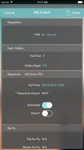 - Flight log Entry