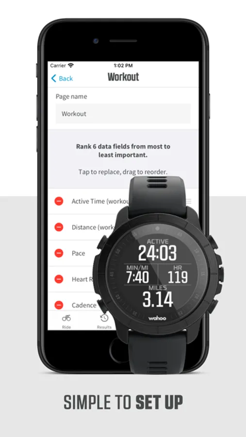 Automatically pair your ELEMNT or ELEMNT BOLT via QR code to your iPhone using the ELEMNT Companion App, and then use the easy interface of your iPhone to set up your profile, configure workout pages, and pair sensors faster than ever before. To build your personalized workout pages, simply drag and drop the order of your favorite data fields to suit your riding goals. Once you are configured, close the app and you are ready to ride!