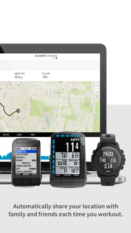 Use the app to send a link that corresponds to your GPS coordinates to friends and family so that they can track you in real time. Or, you can keep the app open to see other riders with a Wahoo ELEMNT bike computer on the road to find your friends.