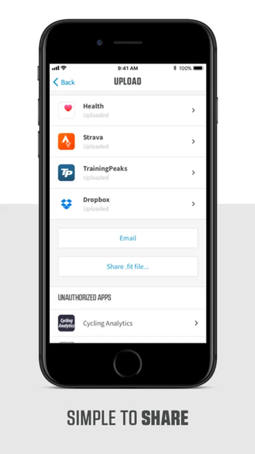 Upload workouts to your favorite training websites including TrainingPeaks, Strava, RidewithGPS, Komoot, HealthKit and many more