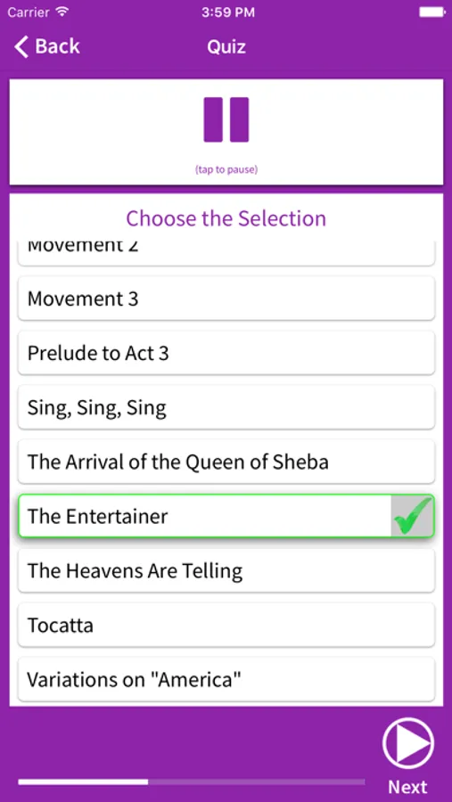 -Take quizzes over random 20-second clips of the selections.