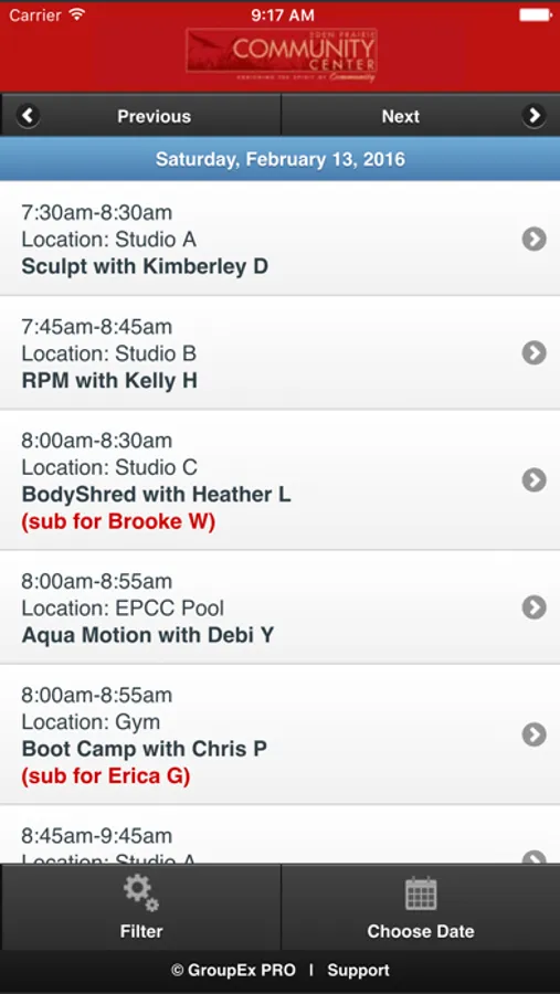 Eden Prairie Group Fitness Schedule: Includes up-to-date fitness schedules with real-time sub and class information. Send to Friend, Add to Calendar, and filtering by Categories and Locations are featured.