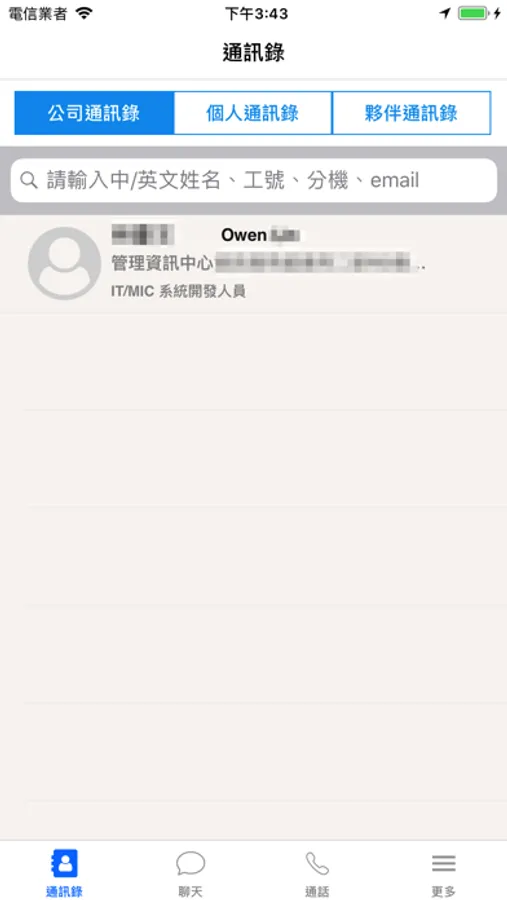 1. 通訊錄:依據不同目的分為公司通訊錄、個人通訊錄、夥伴通訊錄,讓您能以最快又方便的方式搜尋你要找的人員。