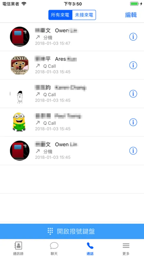 3. 通話:整合公司內部節費資訊與VOIP語音撥打,讓您可快速進行通話。