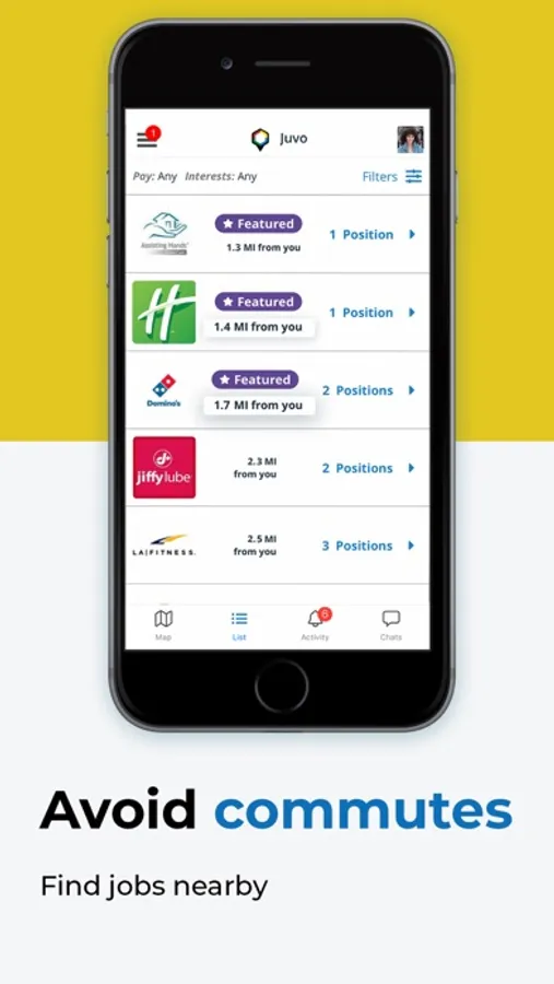Juvo is finding jobs near you and will notify you of exciting opportunities. To apply, simply click on the job you want and push the ‘Apply Me’ button to get matched with an employer, FAST! Chat instantly with employers through the app to get your dream job.