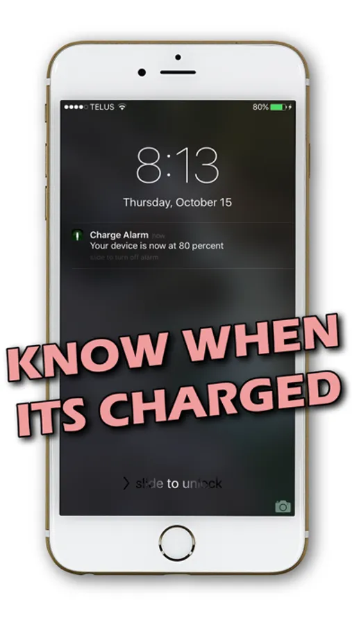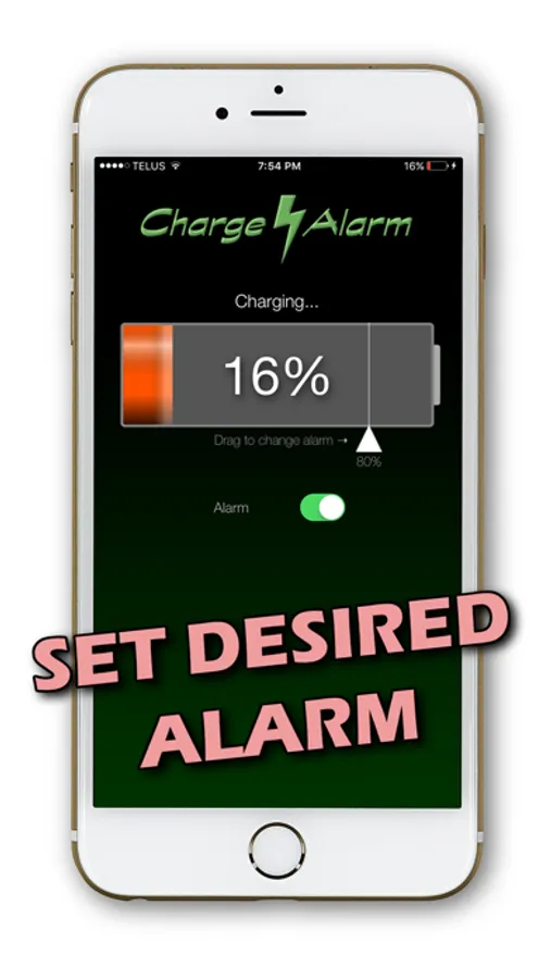• Set an alarm at any level to be notified when your iPhone has charged to that level (any value from 1% to 100%)
