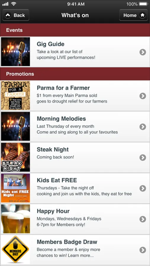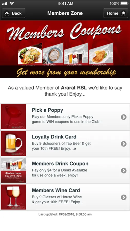 The Ararat RSL App keeps all its Members and Guests up-to-date on: