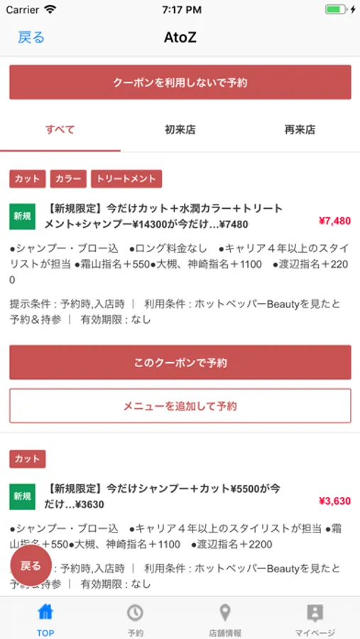 お得なクーポンが配信されます。ネット予約時にクーポン利用での予約も可能なので来店時もスムーズに施術頂けます。