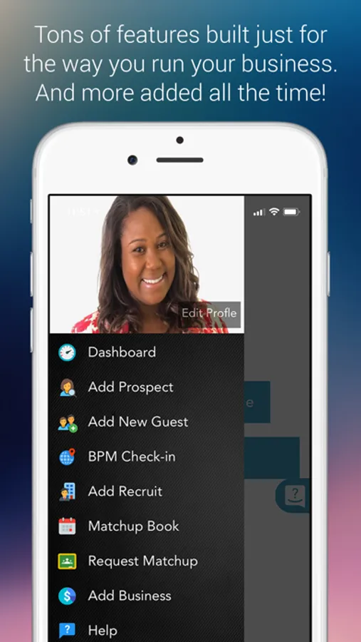 • Receive push notifications to alert you when someone has sent you a message or a request to do an upcoming appointment (Match-ups).