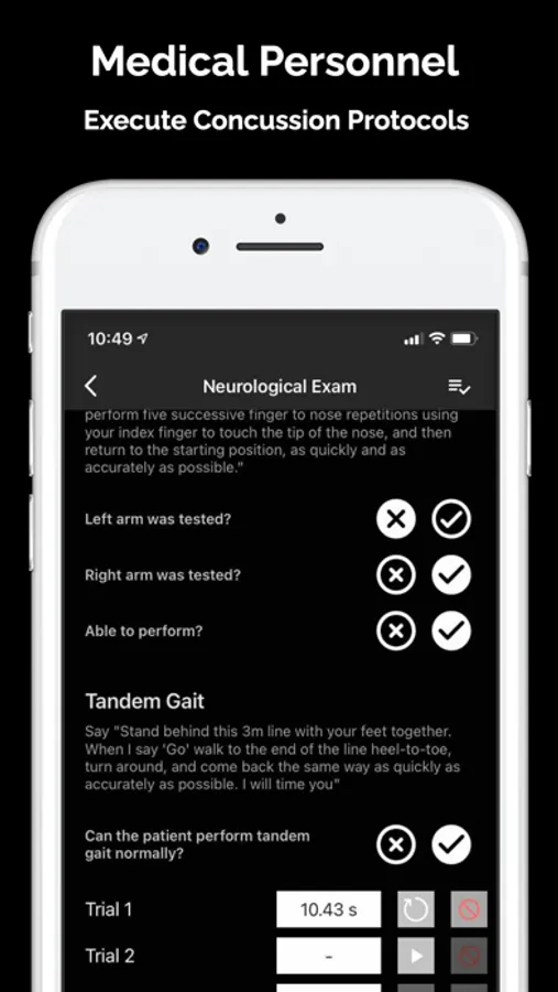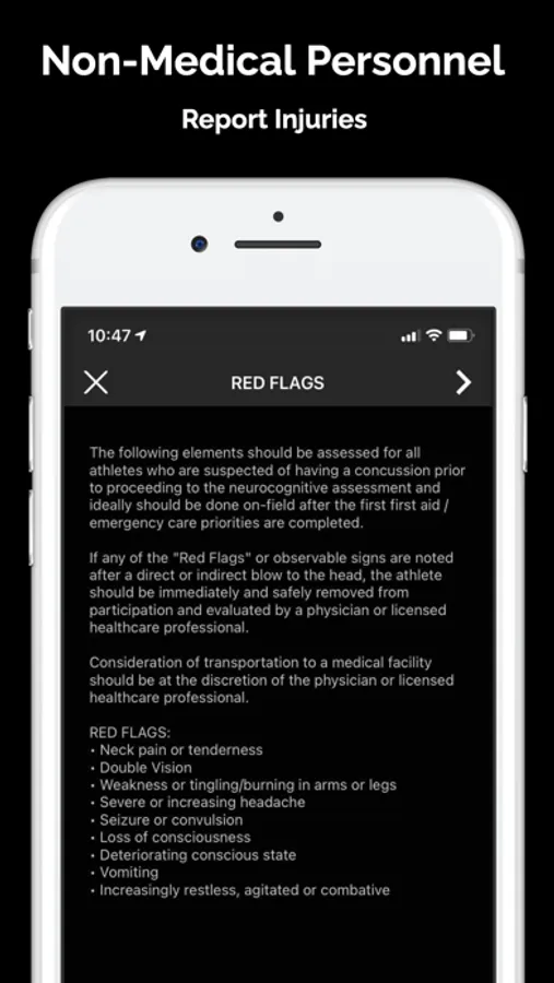 HeadCheck includes today's best practices for concussion assessment by medical professionals and the recommended reporting process for non-medical professionals. If you are using HeadCheck with your organization, it's tailored to your qualifications and protocol.