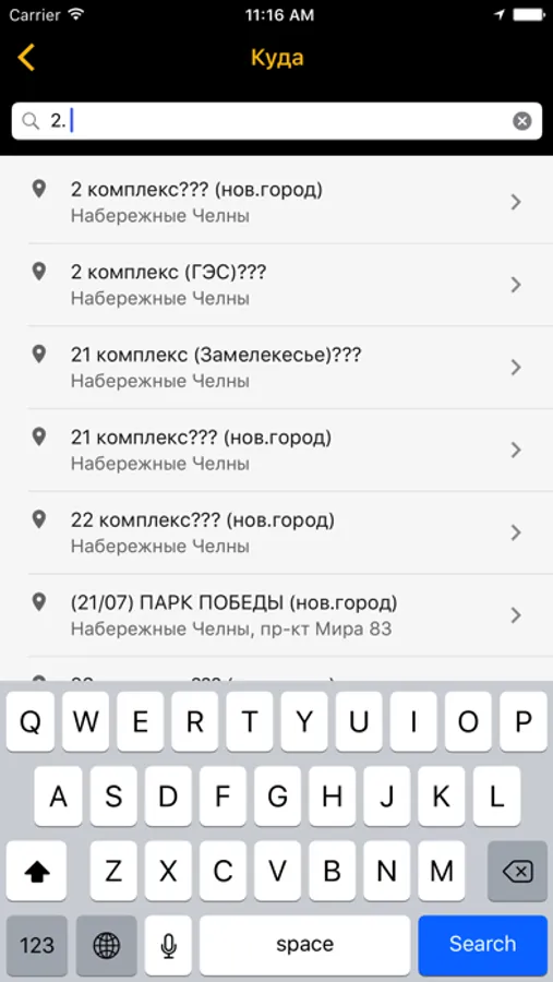 * Выбирать адрес на карте, вводить его вручную или выбирать из списка ранее использованных адресов;
