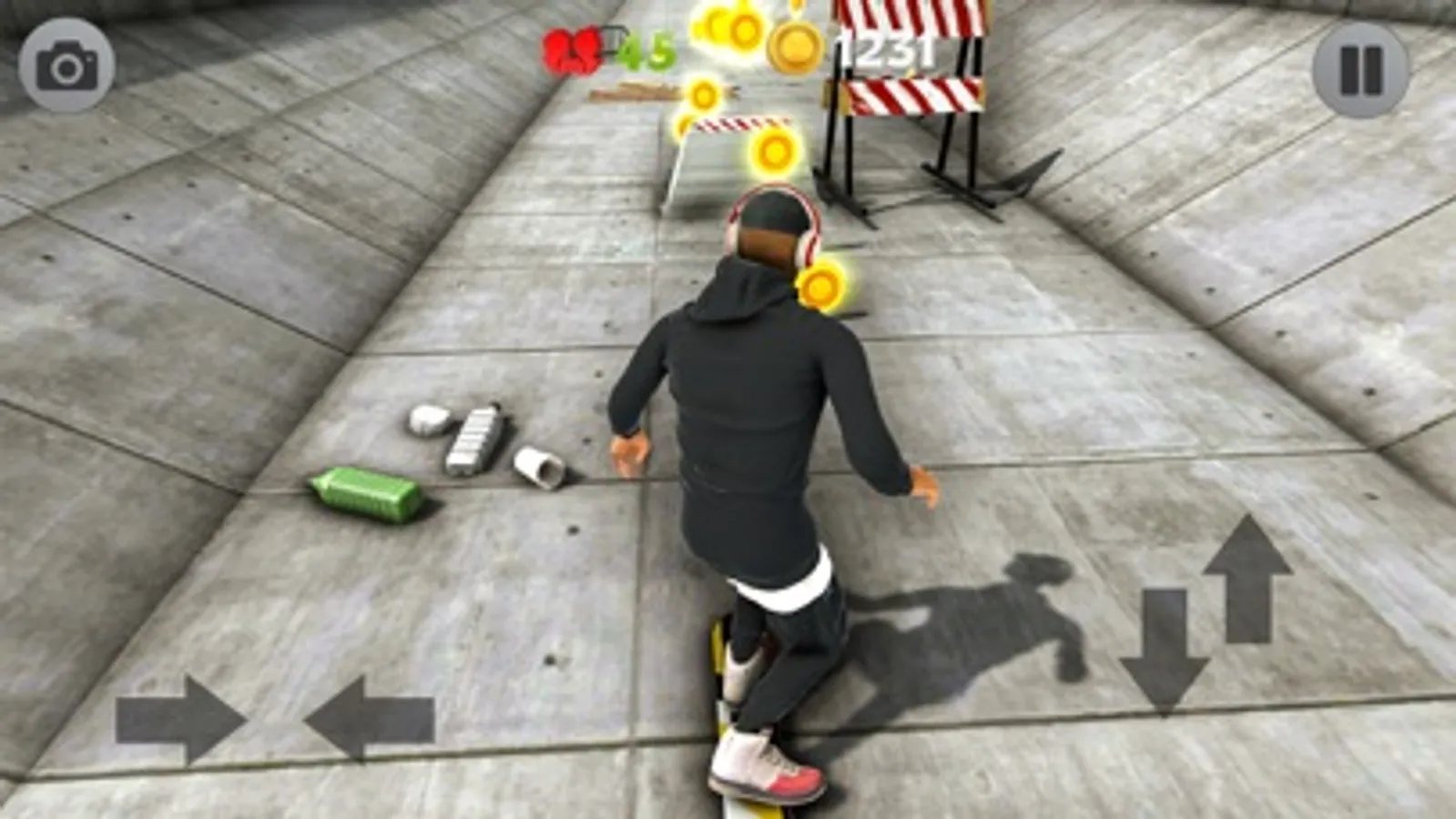 But mind you! These tracks will not be as friendly as they seem. A large obstacle can appear from any side to block your path, rendering your Street Skate Runner unconscious!