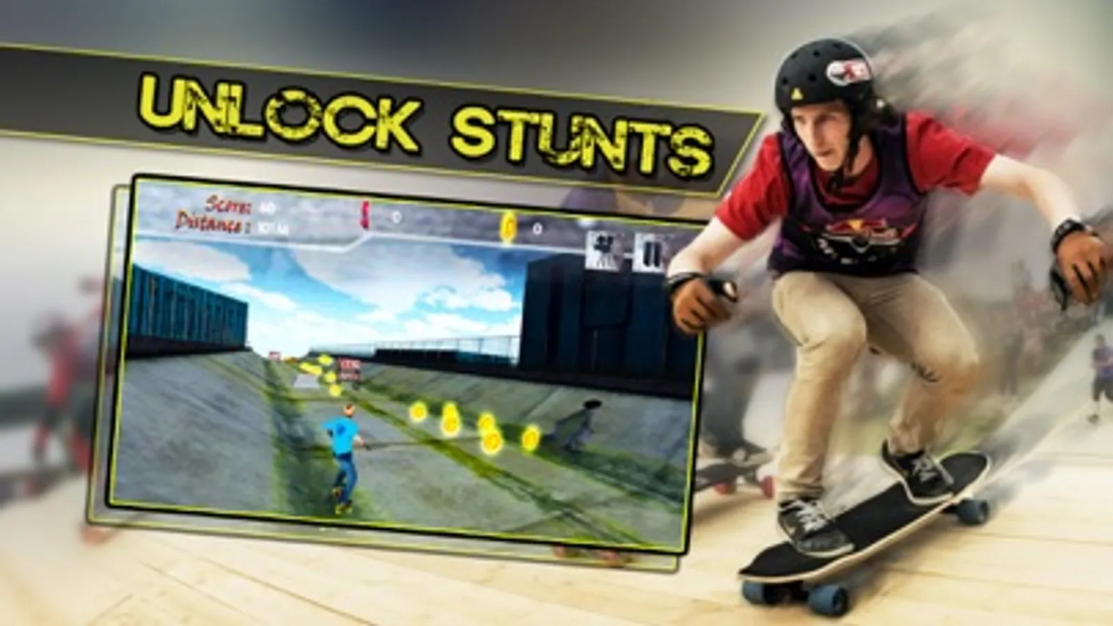 Immerse in an endless runner platform, with brilliant acrobatics and sensational street skate moves, as you travel the city’s tracks and turns to be crowned the skateboard street skate king.