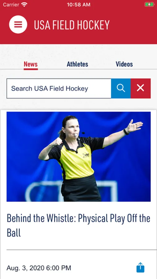The USA Field Hockey App provides athletes, coaches, umpires and fans with updated events and results information, breaking news and inspiring stories across the country and the world. As the official hub of hockey within the United States, you’ll find a stunning display of videos, photo galleries and features of our national team athletes and familiar faces from your backyard. With easy navigation and social media integration, the USA Field Hockey App is excellently crafted for the field hockey lover on the go!