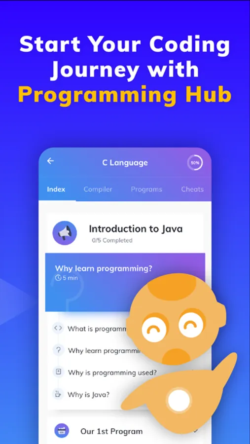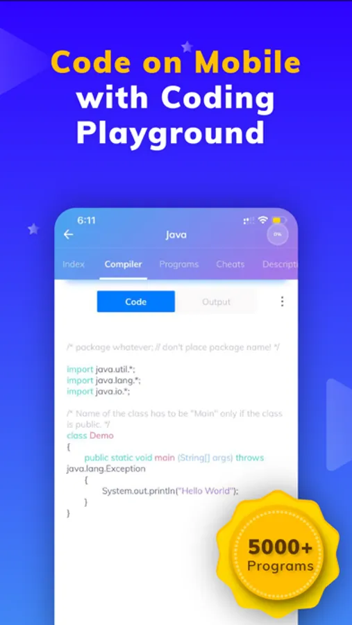 With a huge collection of 5000+ programs (code examples), 35+ courses, and the fastest compiler in the world, all your programming needs are bundled in a single app for your daily practice.