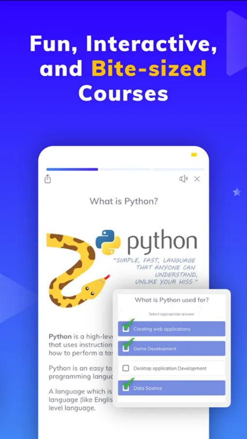 Build your programming skills in a fun way. Learn to code with a game-like learning experience. Explore interactive coding lessons with a one-stop code learning app.