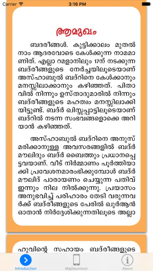 This application consists of Asma-ul Bader Baith, which is requested By Seyed Heider Ali Shihab Al Husseini (Malabar), to read in Monthly Mahfils of "Majlisun-Noor", held in Muslim Mahalls of Kerala, under the umbrella of SYS(Sunni Yuvajan Sangh) and Application Developed by SKSSF Cyber-wing Team.