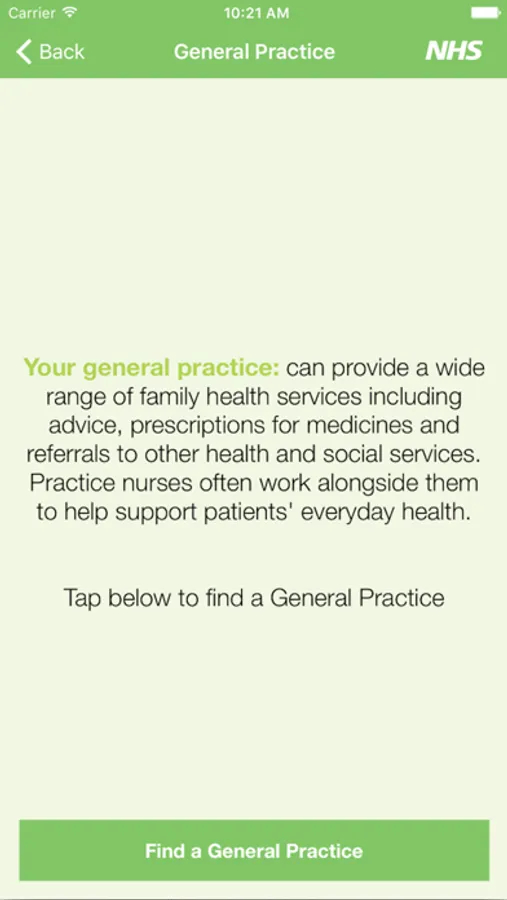 The App is time and location aware. This means that users get real-world, real-time details, opening times and directions to a range of their local NHS services. For each type of service, users can ask to see either all locations or those that are open for service at the specific time of using the App.