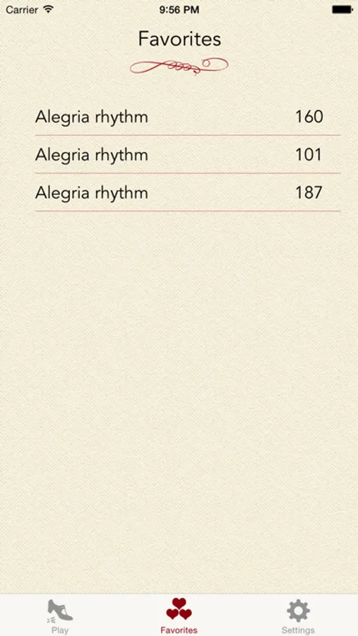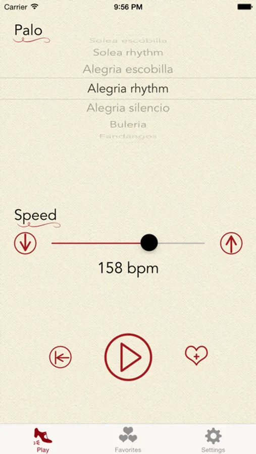 This is the free version of the app which includes only one track, 'alegria rhythm'. In the paid version, 'Flamenco Compas', the following endless tracks are provided: