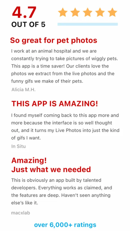 Important: You need an iPhone 6S/6S Plus or above to capture Live Photos. You can still use the app on older iPhone, just get your friends to send you one via iMessage.