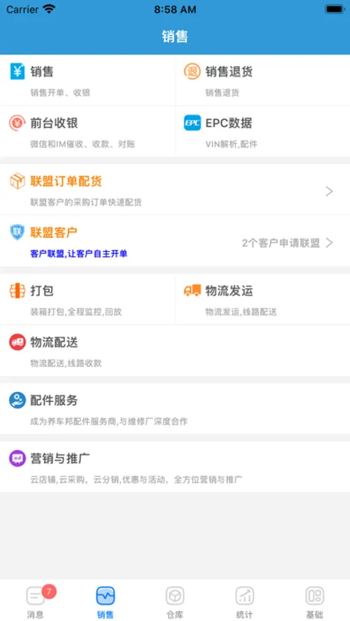 条码识别及开单功能覆盖全部业务场景,单据、配件、货架支持条码一键定位;
