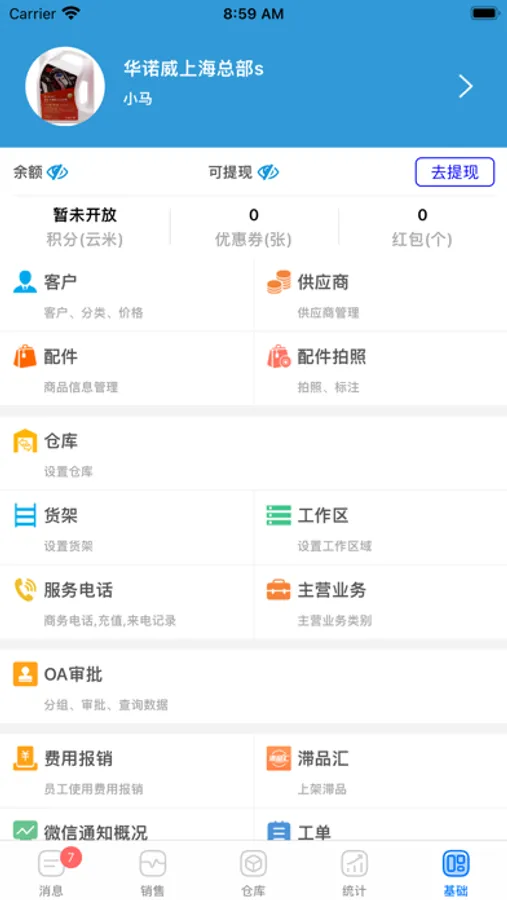 客户、供应商、配件、仓库、货架、主营业务等基础数据快速输入及管理。