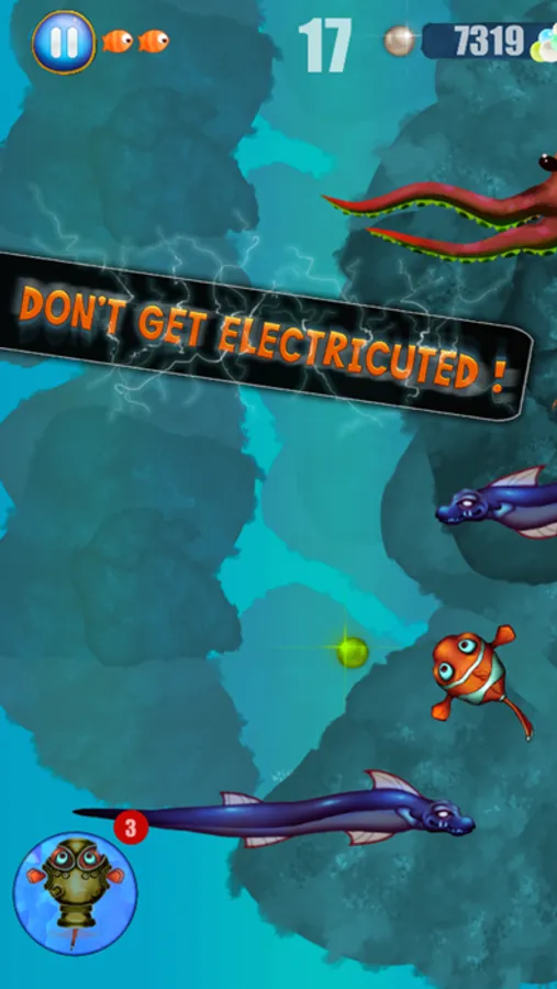 Be the captain of your own destiny in this exciting and endless deep sea voyage through perilous waters! You’ll have to be quick as you tap your way clear of the stinging tentacles of Bernie the Jellyfish and the scaly clutches of Scary Octy the octopus. Collect pearls as you make your way through the waters to unlock the other colorful characters and make use of power-ups and shields. These, and many more challenges await as you leave the confines of your reef behind and tap your way to subaquatic conquest!