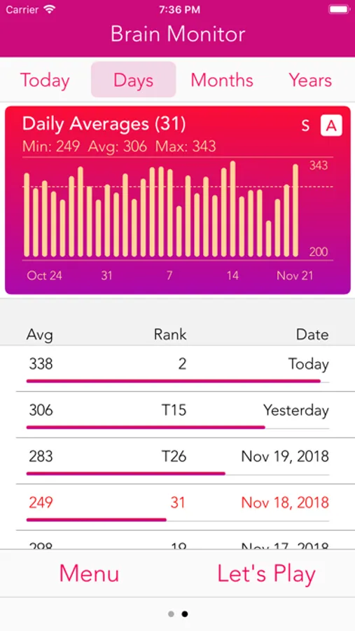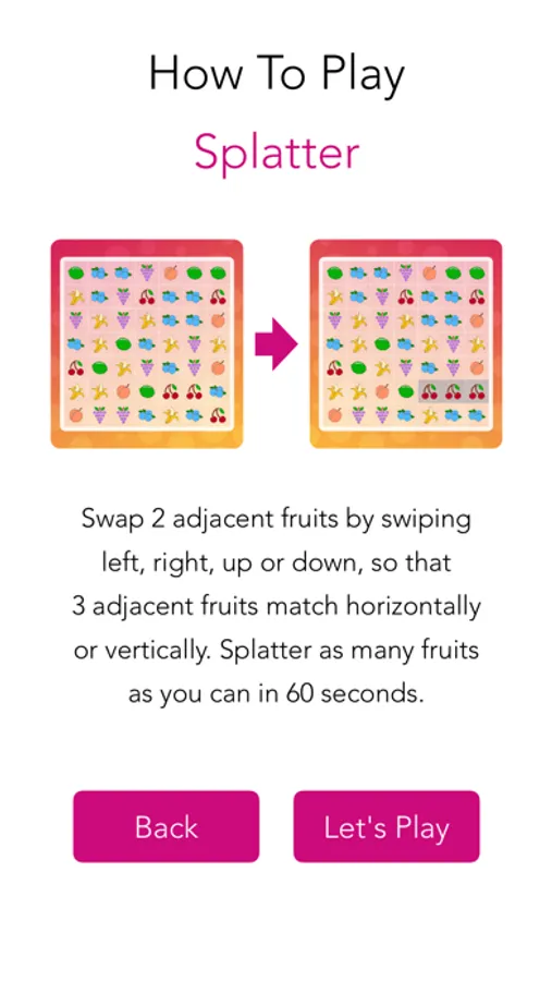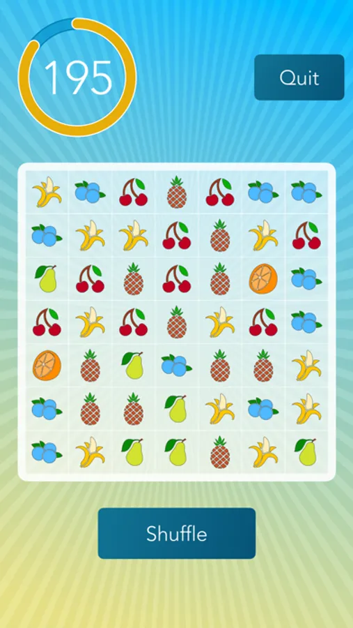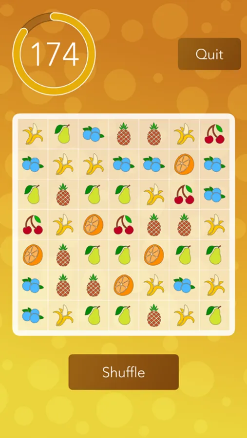 Brain Monitor measures cognitive function by tracking brain game results for up to 100 years. The game in this app, Splatter, is a Match 3 game with 6 fruits. Scoring is based on the total number of matched fruits within in 60 seconds.