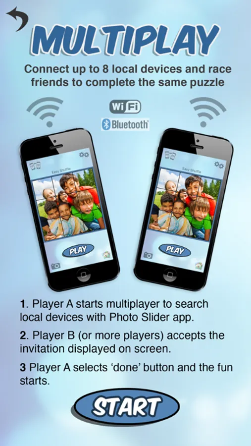 Connect up to 8 local devices and race friends to complete a puzzle using WiFi or Bluetooth.