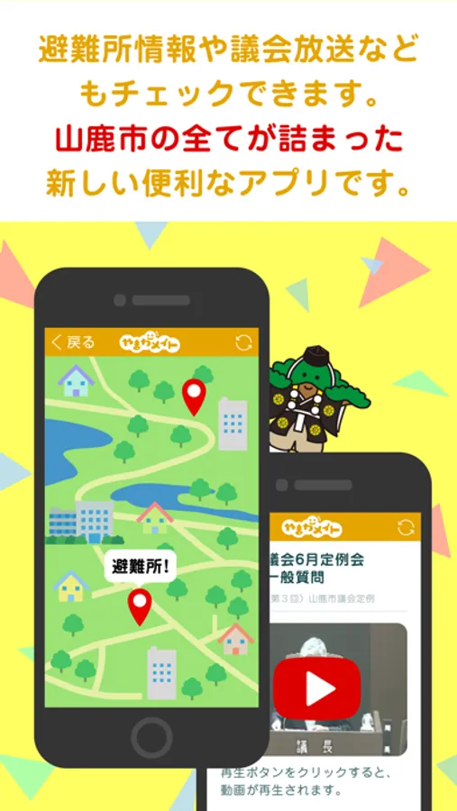 We will deliver regional information and disaster prevention information provided by Yamaga City located in Kumamoto Prefecture, Japan. And with this app, you can check the shelter map and its information in Yamaga city.