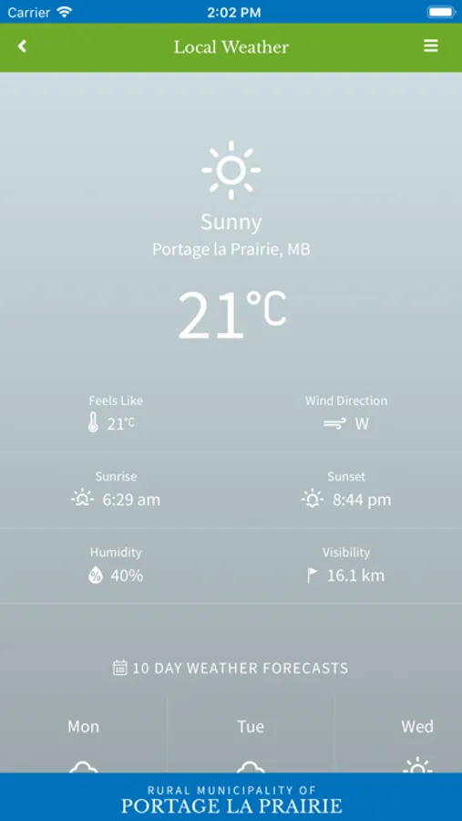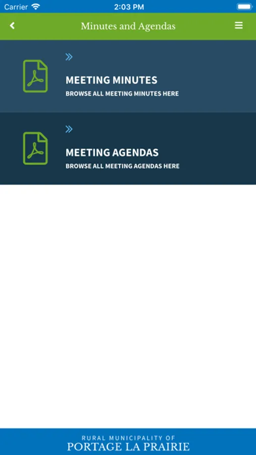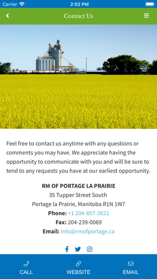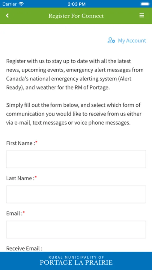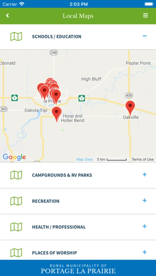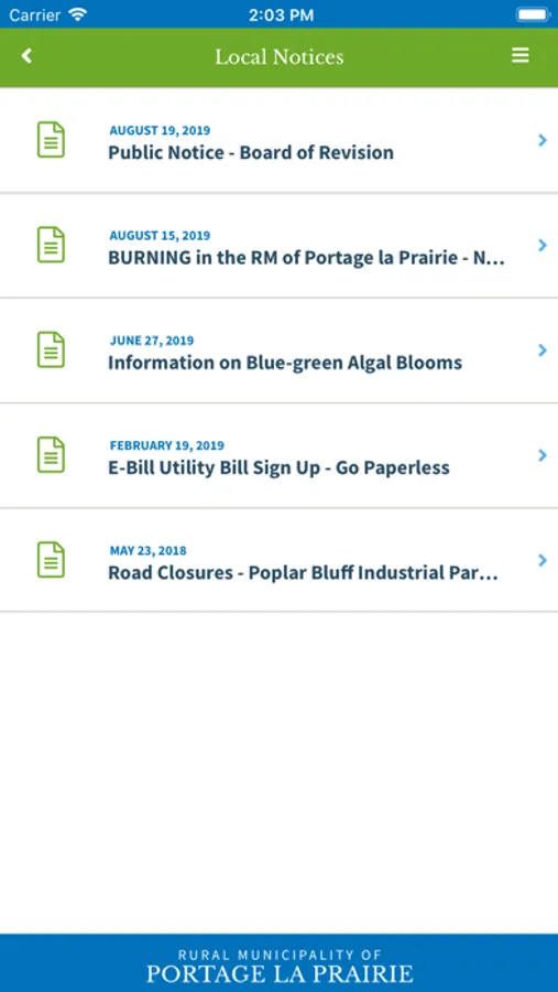 The RM of Portage la Prairie app provides residents and visitors with immediate access to local information such as notices, events, maps and contact information. As well as access to information, this app also provides the community with a means to share emergency information immediately with local residents.
