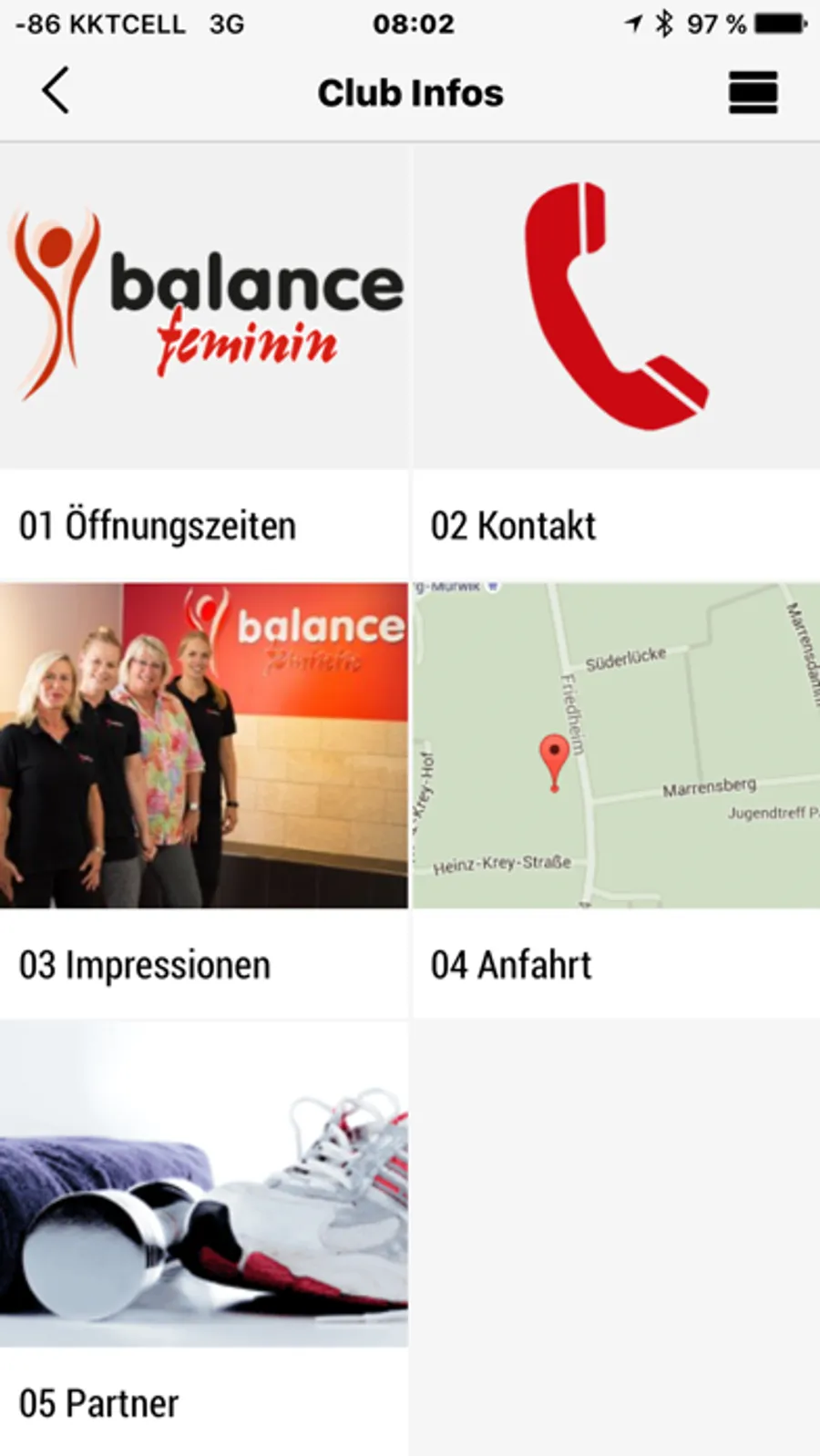 Informationen wie Öffnungszeiten, Kontaktdaten, Studiofotos und Trainingstipps sind für Dich griffbereit und können sofort per E-Mail zu Freunden geschickt werden.