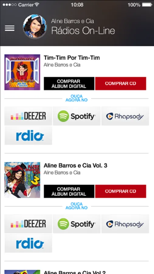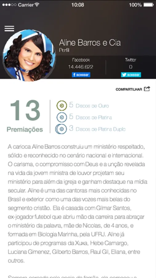 • Perfil dos artistas com todas as informações sobre a carreira do cantor