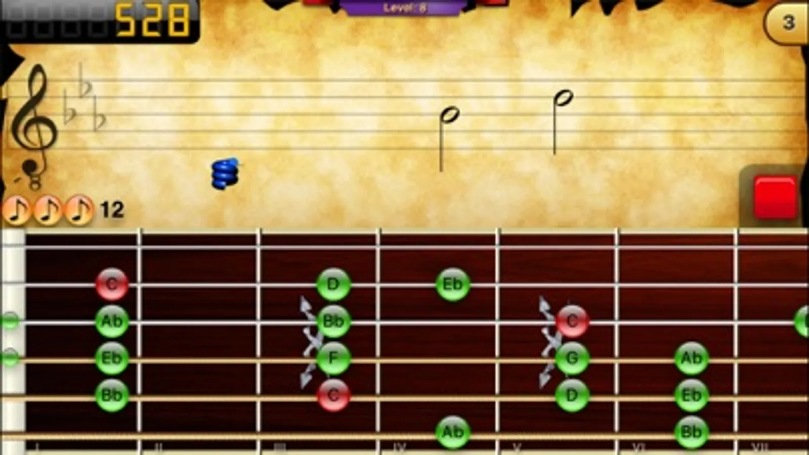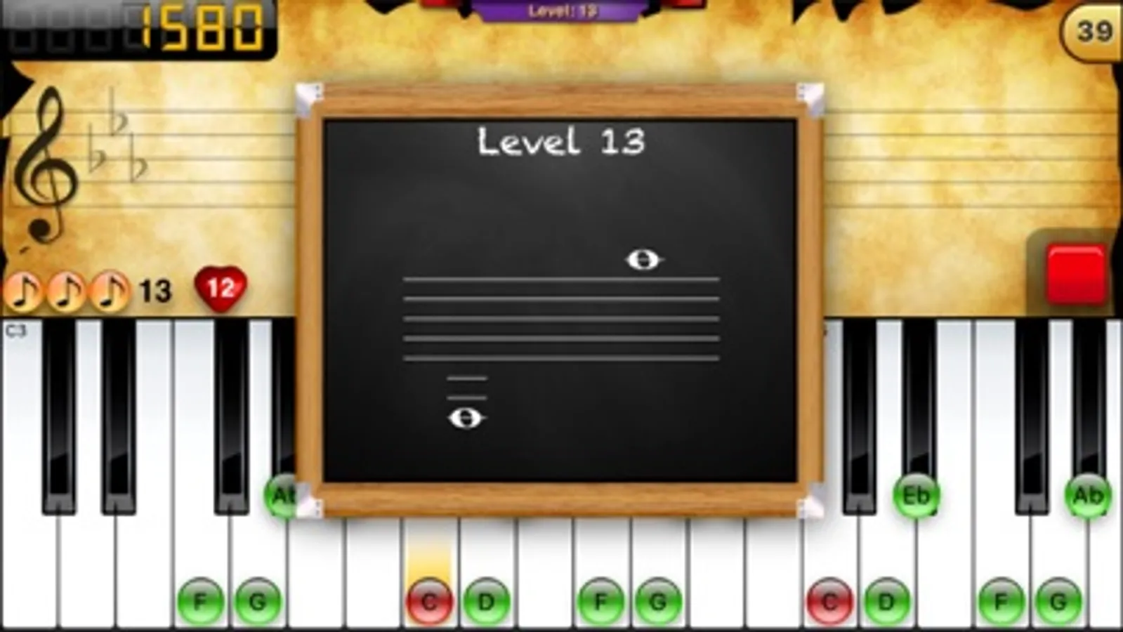 Once the game begins notes start moving from the right side of the screen to the left. These notes have to be identified in the order of their appearance with the current input instrument (i.e. piano). Once a note gets too close to the clef on the left side of the screen it disappears in a cloud of vapor and the player loses one life. For each note named in time the player gets one point or more depending on level. The further the game progresses the more notes will appear in this steady stream and their range will widen. To liven things up a little there are all sorts of "special" characters. Some give you bonus points and others move suddenly or explode even. Once a player has depleted all their lives the game is over and they might receive a high score. After a couple of weeks or so playing the game to conclusion once will take 5 to 10 minutes and that is time well spent.