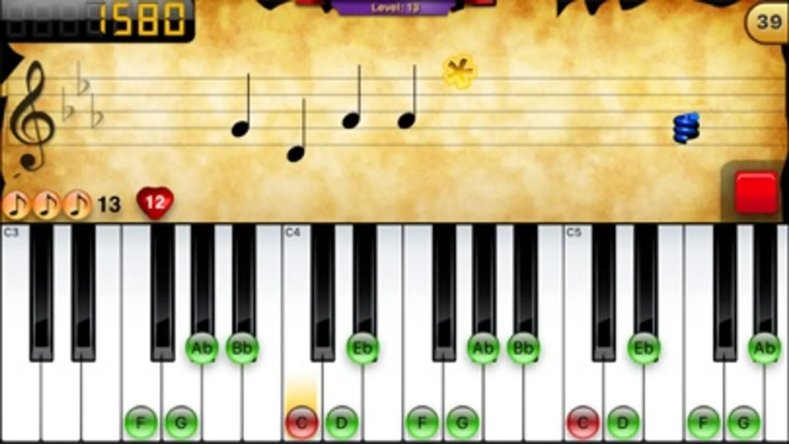 Getting involved on multiple levels is a proven approach, because additional involvement with the subject matter outside of the perceived practice session really enhances the learning process. With the Mozart game we can allow the use of some of our downtime to improve our skills. We don't need an instrument to do so, because one is built right into the software. Then, once the game starts we use this virtual instrument to identify each note as it flies across the staff system. The beauty of it is that you can play the game anywhere. Like when commuting on the subway, waiting at the dentist's, in line at the super market, you name it.