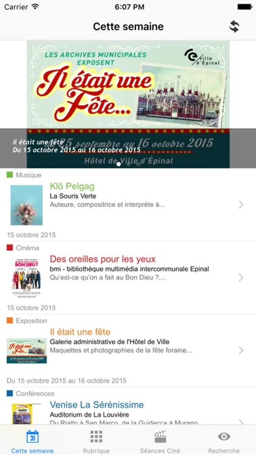 L’application “Sortir Epinal” permet de découvrir toute l’actualité culturelle, les principales sorties géo-localisées de la ville d’Epinal et de son agglomération : cinéma, concert, conférences, expositions, ateliers de pratiques culturelles, mais aussi les festivals et les principales manifestations de la cité