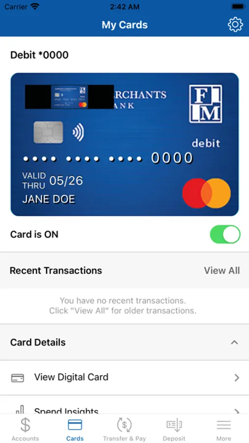 Manage your F&M debit card.